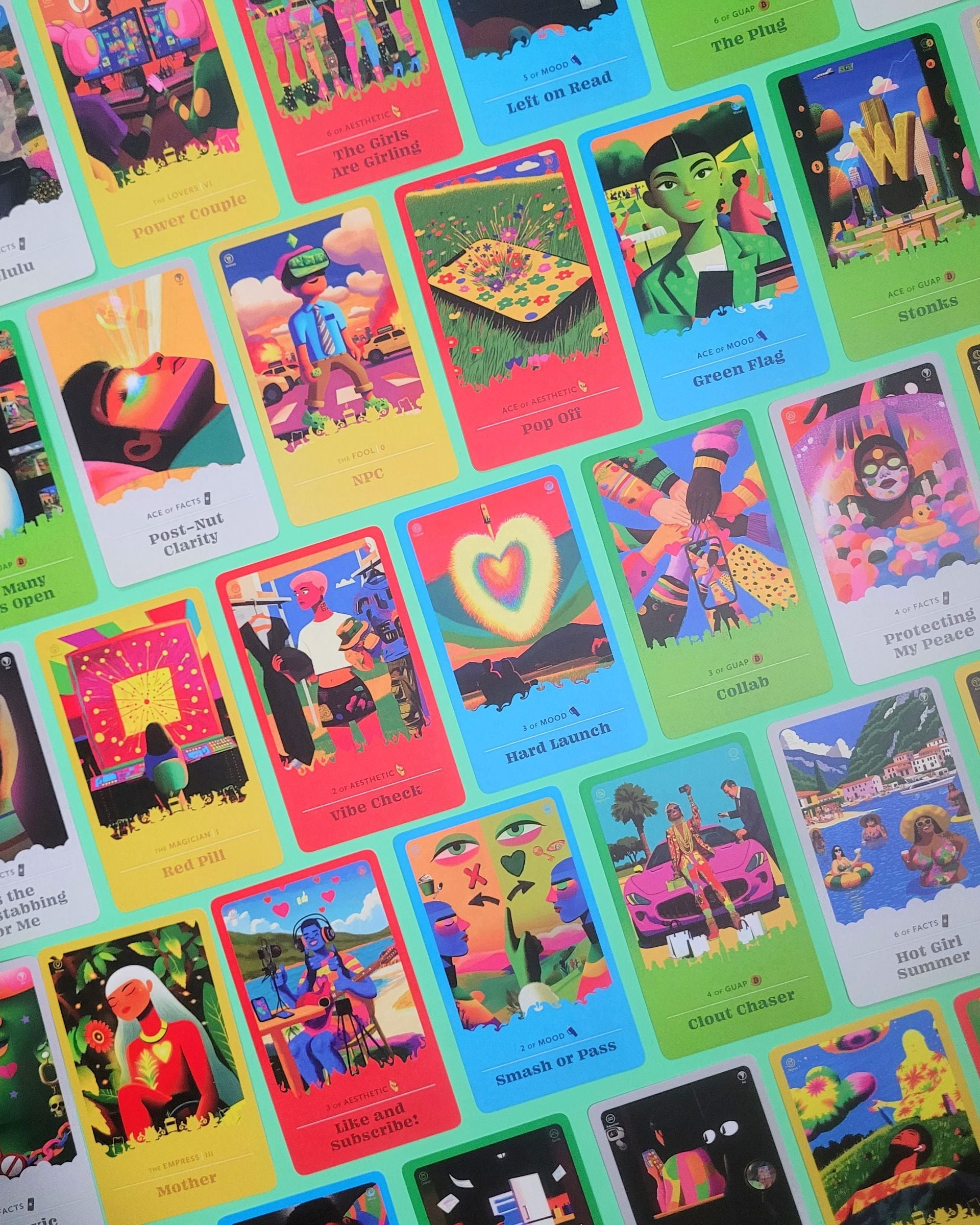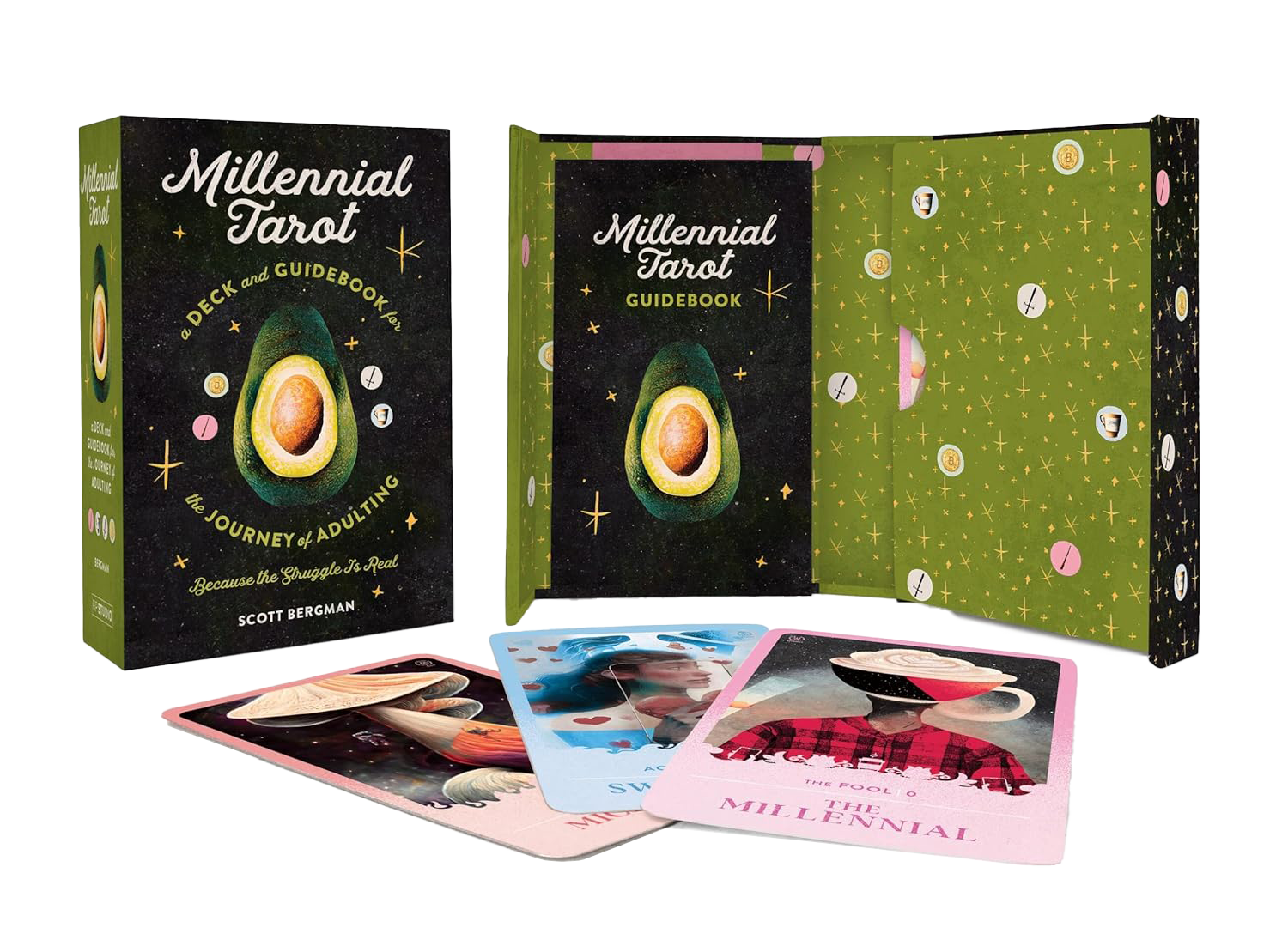 The Tower → Dumpster Fire. The Devil → The F#*$ Boy. 78 cards + guidebook for the journey of adulting. Pull a card, read the guidebook, process the struggle. Deep convos and a guaranteed good time. Solo or with friends.